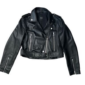 "Looking for a stylish and edgy fashion statement? Check out the LTH JKT Cropped Leather Black Motorcycle Jacket! With a super soft leather zipper and a waist belt, this size L jacket is perfect for a trendy look. Get yours now! #Fashion #MotorcycleJacket"🖤