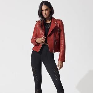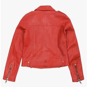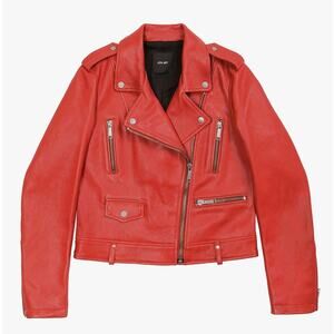LTH JKT Dre Beltless Red Biker Leather Jacket in Fire Red