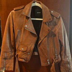 Condition: This LTH JKT light brown cropped leather jacket is in good condition with high quality leather. It is a great style for pairing with high rise pants for a modern look.