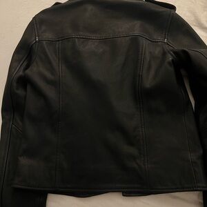 Grained type soft black leather with silver details. No damage barely ever worn. Size small. Purchased from Carbon 38