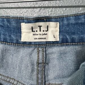 L.T.J. Letter To Juliet Womens Jean Shorts Sz LG Distressed Cut Off Daisy Dukes. Waist 31/32. Inseam 2.5”. Rise 10”. Excellent Condition.