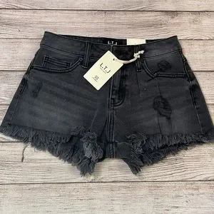 LTJ Letter to Juliet Acid Black Distressed Cut Off Jean Shorts NWT. Factory distressed and faded. High rise. Some stretch.