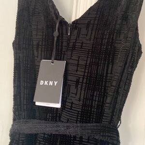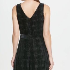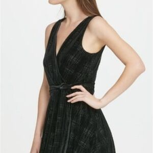 DKNY Women's Dress A-Line Velvet Raised Texture Wrap Look & Matching Sash Belt Accessory (Keeps It’s Shape ⭐️ ) Black Size 8 Measurements