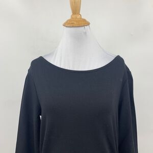 LTS Basics Shirt Womens S Small Black Cotton Stretch Scoop Back Long Sleeve Tee