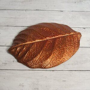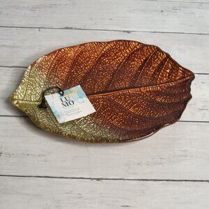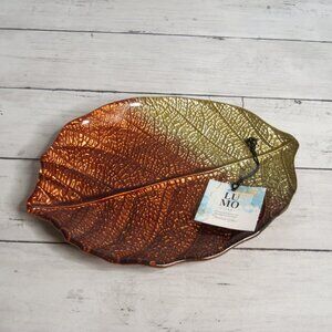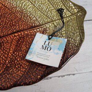 LU MO Hand Crafted Turkish Glass Autumn Leaf Serving Platter Copper Brown Gold