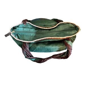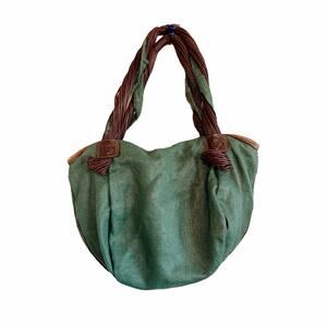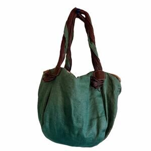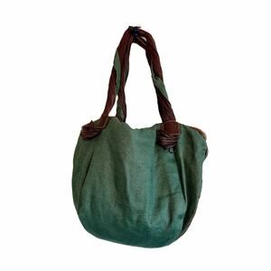 LUANA Green Canvas Hobo Bag Strappy Dual Handle Shoulder Handbag Zip Closure GUC