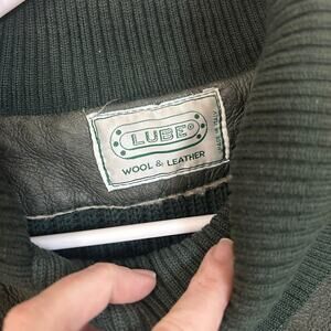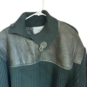 LUBE Men's Hunter Green Wool & Leather Vintage Sweater Size 48