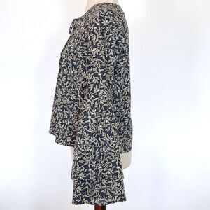 LUCCA Navy Leaf Print Ruffle Bell Sleeve Crop Top