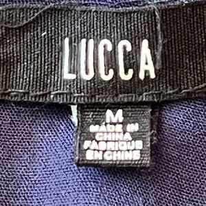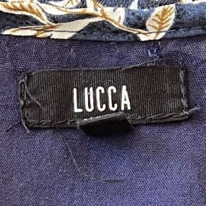 LUCCA navy crop top with chic leaf print, ruffle bell sleeves offer feminine flair. Perfect for styling with high-waisted pants.