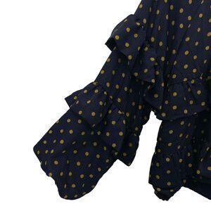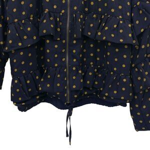 LUCCA Zip Crop Jacket Size Small Ruffle Balloon Sleeve Navy Gold Polka Dot Artsy