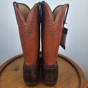 LUCCHESE MEN'S SIZE 14D, MADE IN USA Handmade BROWN Calfskin Western Boots NWT