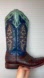 LUCCHESE WOMENS AMBERLYN CHOCOLATE & NAVY OSTRICH LEATHER COWGIRL WESTERN BOOT