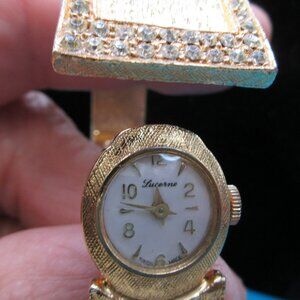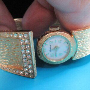 LUCERNE BANGLE BUCKLE BRACELET WATCH ~ RHINESTONE ACCENTS~BASE METAL~STAINLESS