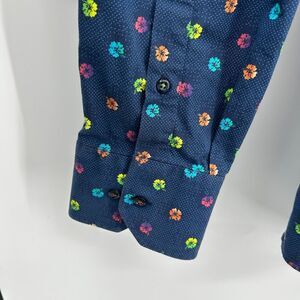 LUCHIANO VISCONTI Navy Blue Rainbow Flower Long Sleeve Button Up Dress Shirt XL