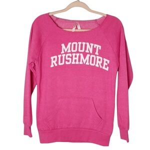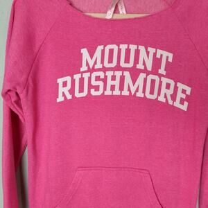 LUCKEE LADY Women's Pink Sz Small Sweatshirt "MOUNT RUSHMORE" Scoop Neck Pockets