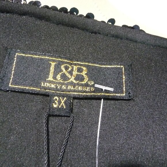 LUCKY & BLESSED BLACK SEQUIN CARDIGAN VEST 3X
