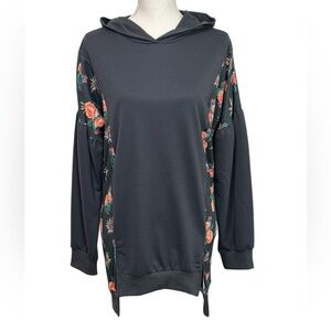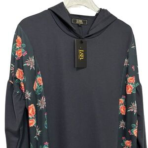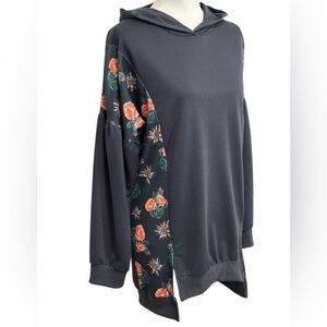 LUCKY & BLESSED - SIZE MEDIUM - NWT - GRAY SWEATSHIRT HOODIE - MIXED FABRIC B19