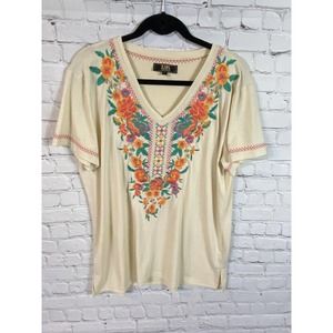 LUCKY & BLESSED white wmbroidered short sleeve large.