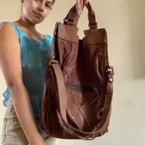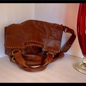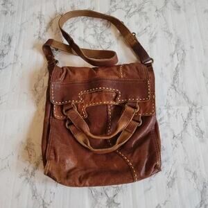 LUCKY BRAND Abbey Road BAG Leather BOHO Crossbody Messenger Brown Fold O…