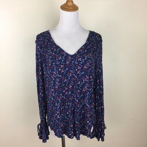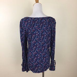 LUCKY BRAND Adjustable Drawstring Blue MultiColor Floral Print Long Sleeve Shirt