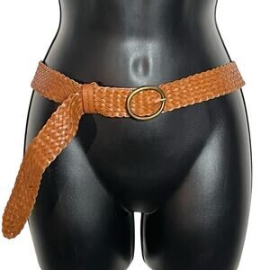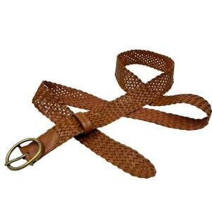 LUCKY BRAND BOHO WESTERN TAN LEATHER BELT WOVEN BRAIDED L XL EXCELLENT PREOWNED