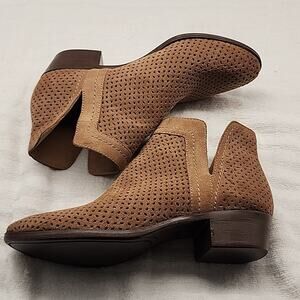LUCKY BRAND BRAYLIE LEATHER PERFORATED SUEDE ANKLE COMFORT BOOT LADIES 9.5 GUC