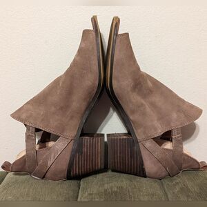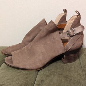 LUCKY BRAND Banu Cutout Taupe Leather Peep toe Booties Sandals with defect