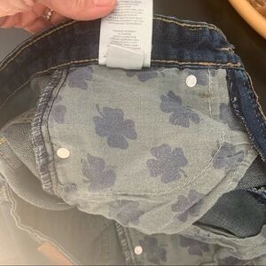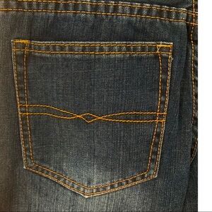 Boys Size 16. Like new condition. Light whiskering and fading as designed. Stock photo is to show fit only. Mid-rise. Zip front, 5 pocket style. 80% Cotton, 20% Polyester. Approximate measurements - taken when laying flat (cannot guarantee fit):