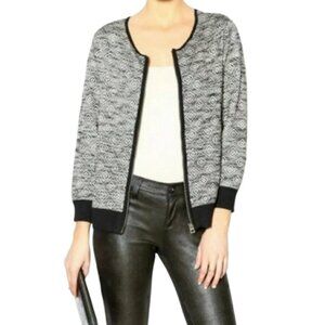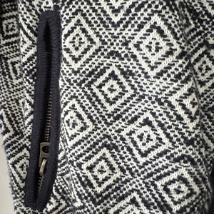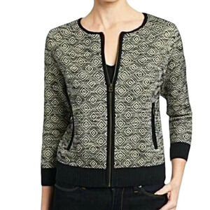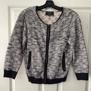 Lucky Brand jacquard knitted zip up three quarter sleeve jacket.