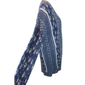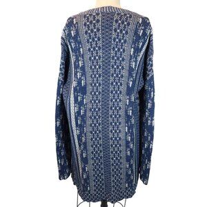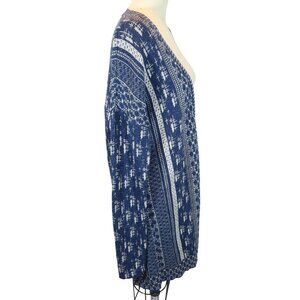 LUCKY BRAND Blue Open Front Long Open Front Southwestern Cardigan Sweater Size L