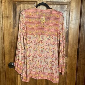 LUCKY BRAND | Boho Embroidered Split Neck Tunic Blouse | Size Small