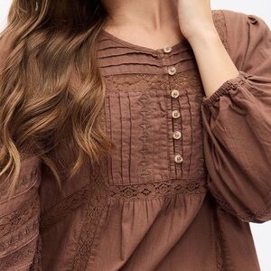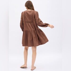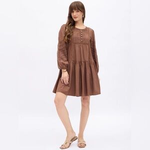 LUCKY BRAND Brown Lace Detail Boho Tiered Mini Peasant Dress