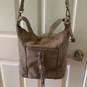 LUCKY BRAND CARMEN Khaki SUEDE LEATHER Shoulder Crossbody antique tone hardware