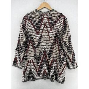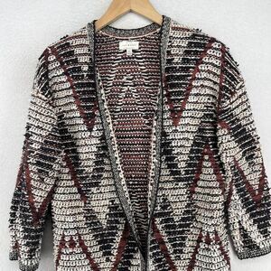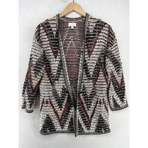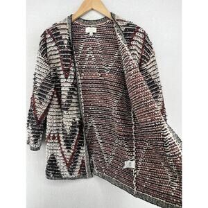 LUCKY BRAND Cardigan Womens S Chevron Southwestern Open Front Cotton Blend Gray