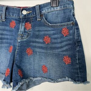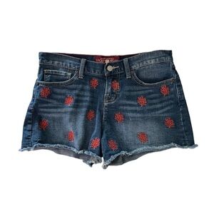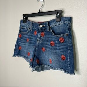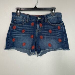 LUCKY BRAND Coral Embroidered Boardwalk denim cutoff shorts size 0/25