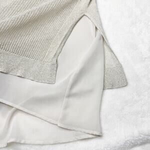 LUCKY BRAND Cream Gold Metallic Layered Crochet Sleeve V-neck Sweater Medium