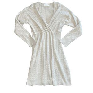 LUCKY BRAND Cream V-Neck Sweater Dress Size Large