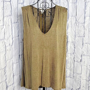 LUCKY BRAND Cream and Green Abstract Sleeveless Blouse Large