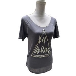 LUCKY BRAND DEF LEPPARD DISTRESSED STUDDED LOGO TEE SHORT SLEEVE GREY T-SHIRT S