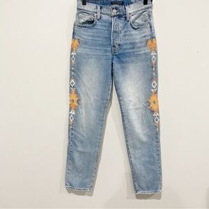 LUCKY BRAND Drew Mom Jean Embroidered Boho Aztec Size 24 A 00