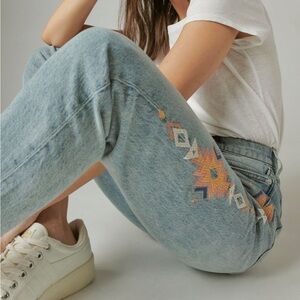 LUCKY BRAND Drew Mom Jean Embroidered Boho Aztec