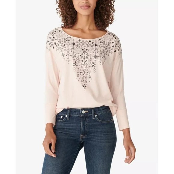 LUCKY BRAND Drop Shoulder Easy Tee Long Sleeve Pink - Small NWT