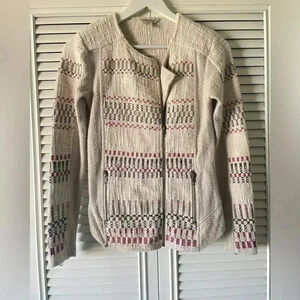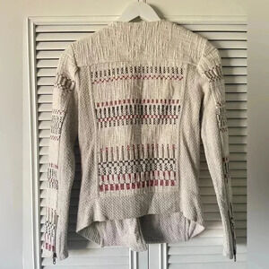 LUCKY BRAND Embroidered Zip Moto Jacket Jacquard Cotton Geometric Size XS