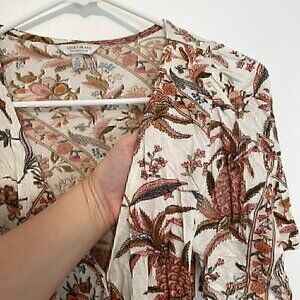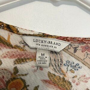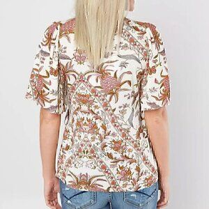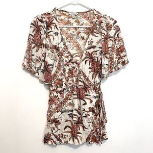 LUCKY BRAND Floral Print Wrap Top Cream Ivory Multi Short Sleeve Boho Surplice M