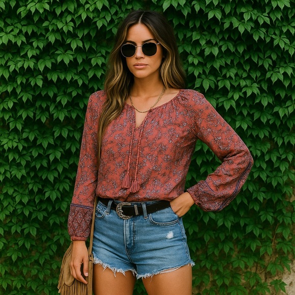 LUCKY BRAND Floral Tassel-Tie Blouse, S