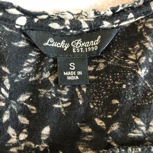 LUCKY BRAND Floral Top Women's Size Small Blue Gray Boho Short Sleeve Blouse