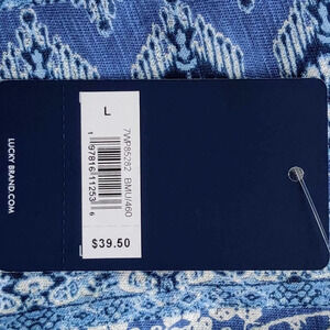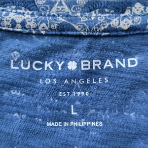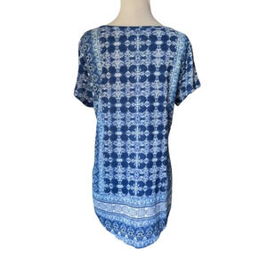 LUCKY BRAND Geo Print Border Tee 1X Persian Rug Boho Blue White T-shirt