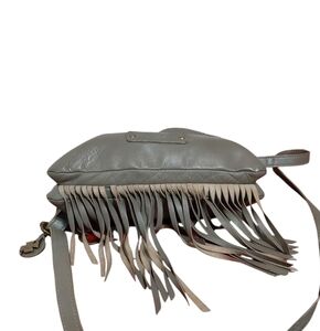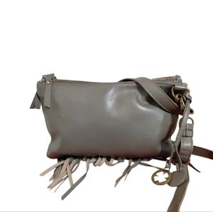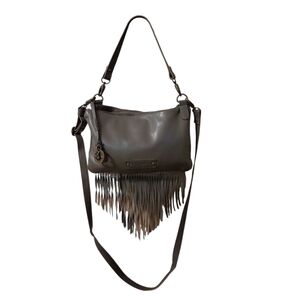 LUCKY BRAND Gray Leather Fringe Convertible Crossbody Shoulder Bag