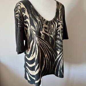 LUCKY BRAND Grey and Cream Zebra Cotton Shirt L