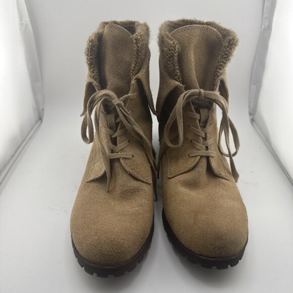 LUCKY BRAND Huntress Lace Up Ankle Boots Tan w/ knit collar Size 9 M/ EU 39 EUC